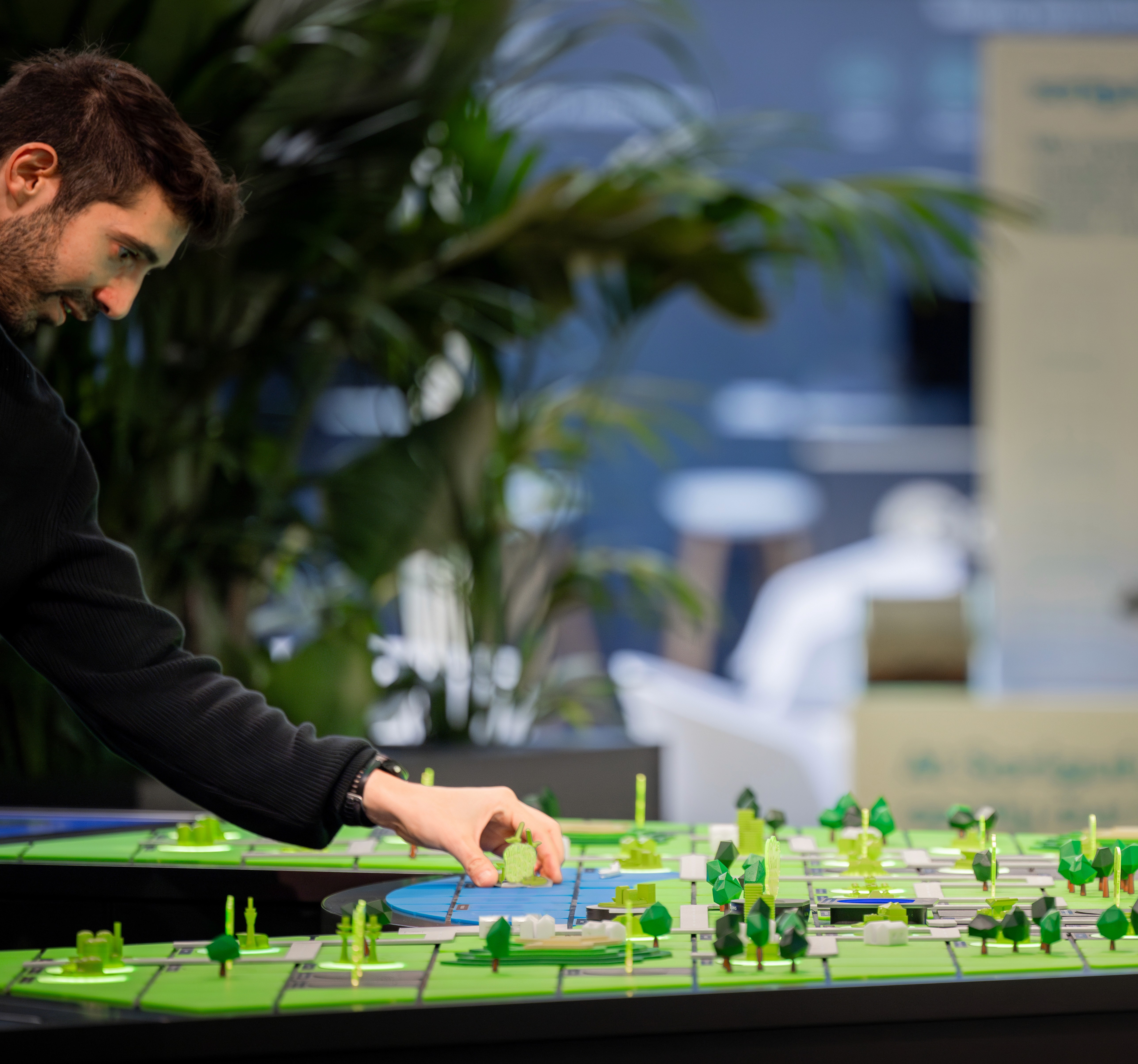 We built HarmoniCity: an interactive table with a physical city model, 50 smart tiles, and two recognition screens.